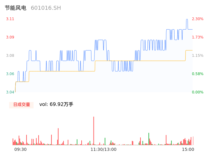 04月17日,节能风电收报3.10,股价涨幅1.97%,成交金额2.15亿元,换手率1.17%。