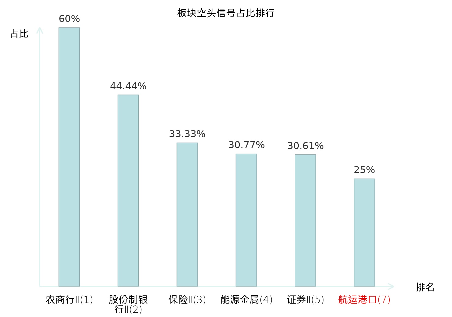 全市场所有行业板块中主力空头信号占比排名中,农商行Ⅱ板块位居第一。证券Ⅱ板块名次提升最快,较昨日上升119位。