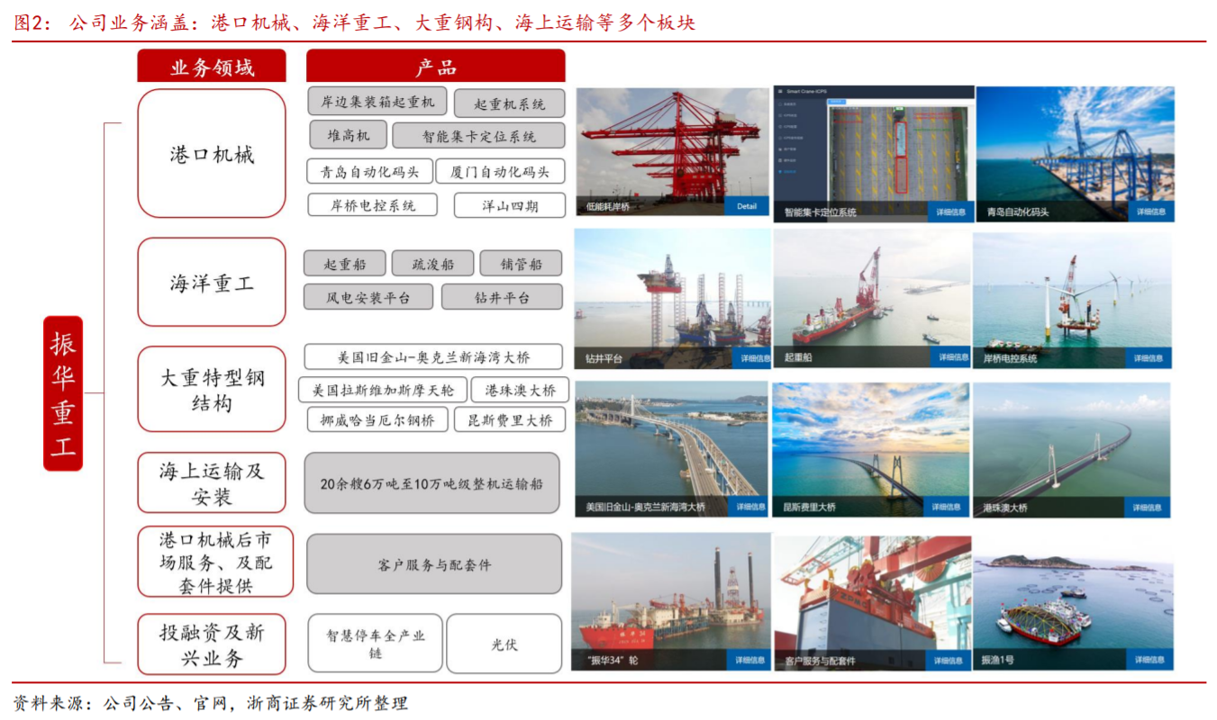 1)公司为全球港机龙头+海工装备领军者,岸桥起重机全球市占率70%,连续26年世界第一。