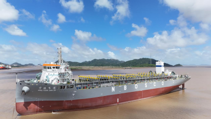“我们当时的两种新船型——内支线1000箱船和近洋线1100箱船,是团队紧密结合自身业务和航线需求专门设计的,装箱量更大,运营成本更低,直到现在依然是公司的主力船型。”娄建伟语气中充满自豪。为更有效地整合航运资源、服务集团“双一流”建设,宁波远洋开启了资本化征程。2020年12月,宁波舟山港股份有限公司董事会审议通过筹划子公司分拆上市的议案。2022年12月8日,伴随着上海证券交易所响亮的铜锣声,宁波远洋成功登陆A股主板,成为国内首家“A拆A”上市港航企业。上市不仅带来了资本活水,更催化了新一轮运力升级。2021年至今,宁波远洋新增自有船舶21艘,总载重吨增长近60万吨,载箱量增加超3万标准箱,运力规模实现了跨越式增长。规模壮大的同时,船队结构也加速向绿色化、智能化方向转型。
