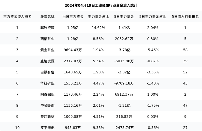 从主力资金流向来看,工业金属行业今日主力资金流入120.62亿元,在所有申万二级行业中排名:13/131。