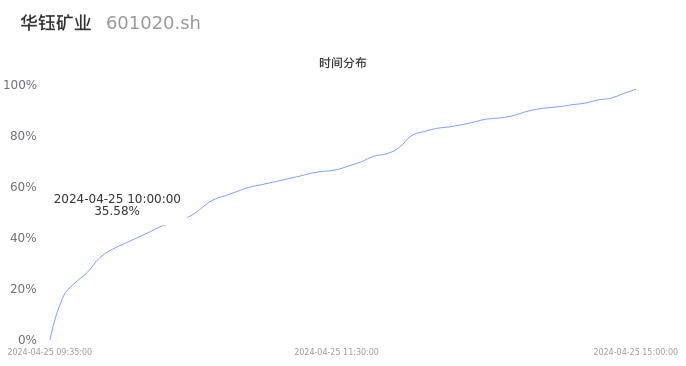 601020华钰矿业2024年04月25日成交47.75万手,成交金额4.42亿元,相较昨日放量13.05万手,换手率6.07%,成交清淡。