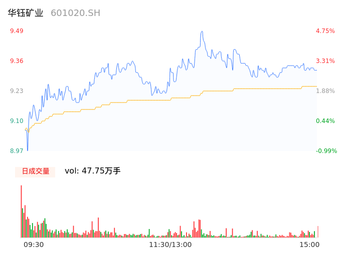 04月25日,华钰矿业收报9.32,股价涨幅2.87%,成交金额4.42亿元,换手率6.07%。