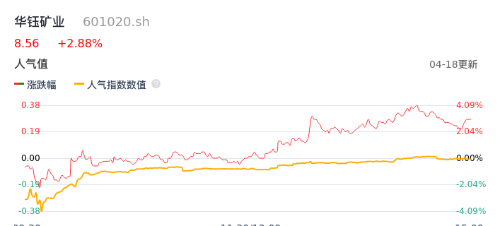 04月18日,华钰矿业收报8.56,股价涨幅2.88%,成交金额2.72亿元,换手率4.10%。