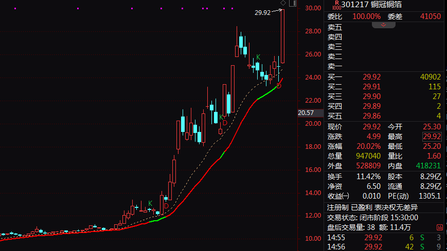 金属概念股也全线走强,工业金属、稀有金属、稀土永磁、金属新材料等细分板块集体强势上攻,铜冠铜箔临近收盘快速拉升至20%涨停,金田股份、丽岛新材、华峰铝业、华钰矿业等纷纷强势涨停。