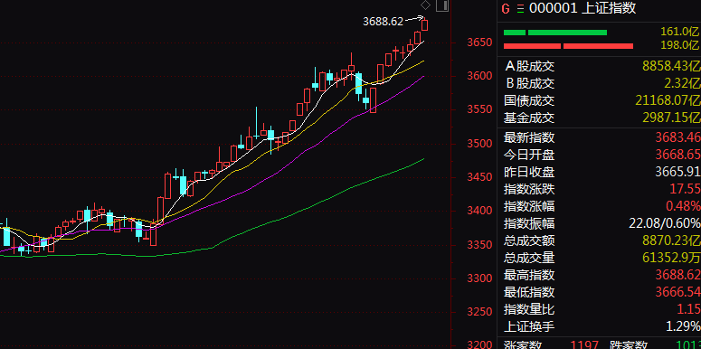 今日,A股继续强势上攻,上证指数创3年半来新高,创业板指大涨3.62%,逼近2500点,深证成指、沪深300等也纷纷创出年内新高。成交放大至2.18万亿元,创近半年来新高。