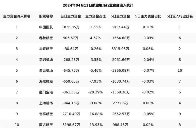 从主力资金流向来看,航空机场行业今日主力资金流入14.29亿元,在所有申万二级行业中排名:124/131。