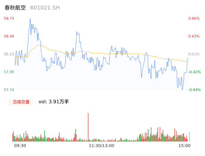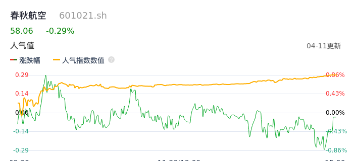 04月11日,春秋航空收报58.06,股价涨幅-0.29%,成交金额2.27亿元,换手率0.40%。