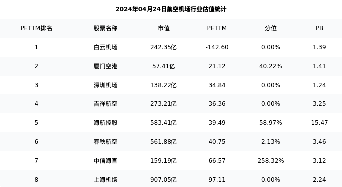 从估值角度看:春秋航空最新市盈率PETTM为40.75,在行业内排名5/12,处于2.13分位。
