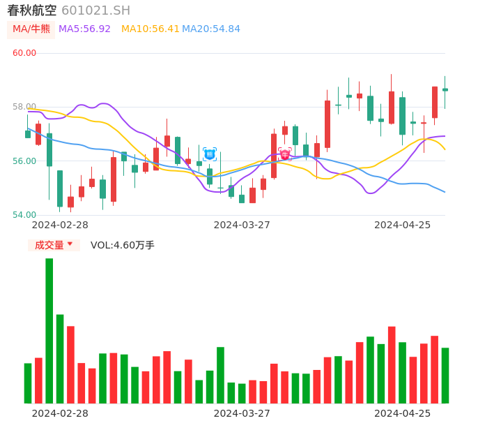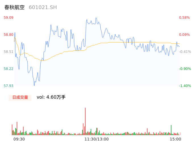 04月25日,春秋航空收报58.60,股价涨幅-0.26%,成交金额2.70亿元,换手率0.47%。