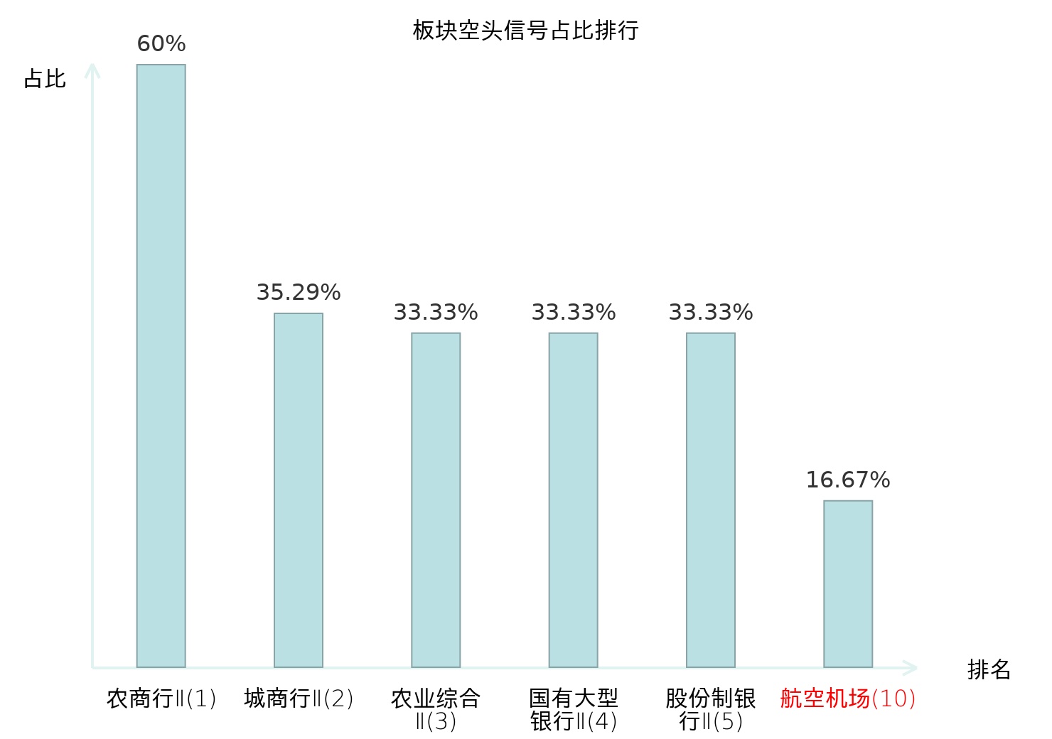 全市场所有行业板块中主力空头信号占比排名中,农商行Ⅱ板块位居第一。铁路公路板块名次提升最快,较昨日上升106位。