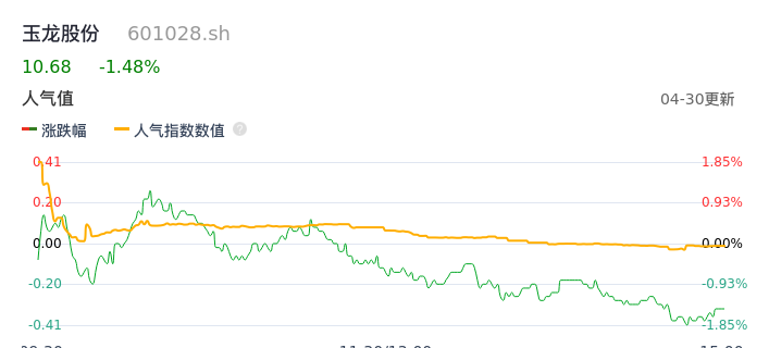 04月30日,玉龙股份收报10.68,股价涨幅-1.48%,成交金额1.63亿元,换手率1.93%。