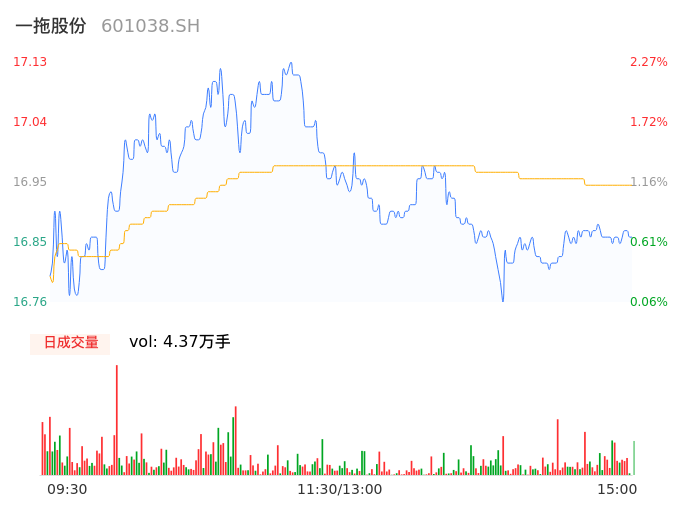 04月25日,一拖股份收报16.85,股价涨幅0.60%,成交金额7399.42万元,换手率0.60%。