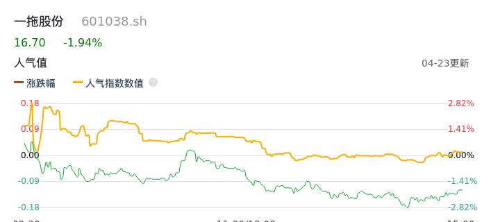 04月23日,一拖股份收报16.70,股价涨幅-1.94%,成交金额1.17亿元,换手率0.95%。