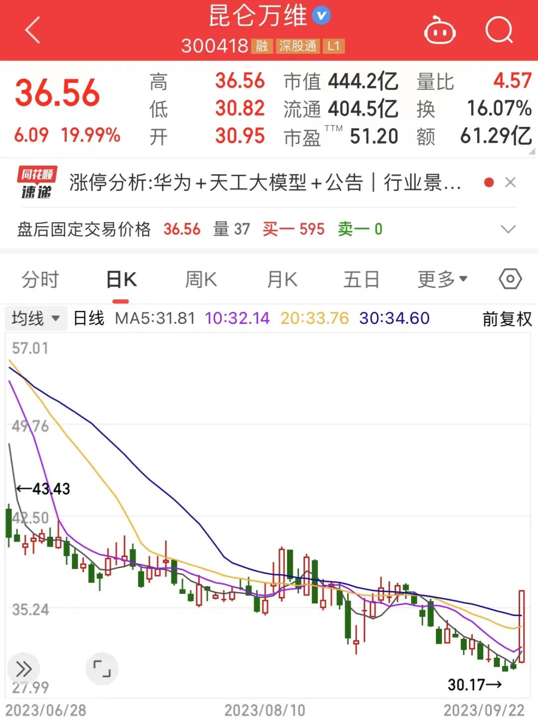 受此消息影响,该股今日20cm涨停,全天成交额61.29亿元;深股通专用席位净买入3.38亿元。