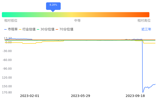 信达证券当前市现率为-142.23,在所属的证券中,市现率排23,前5名分别为、申万宏源市现率1.82、兴业证券市现率2.69、东北证券市现率3.40、广发证券市现率3.79、国泰君安市现率4.67。信达证券当前市现率为-142.23,超过近3年8.28%的历史数据。