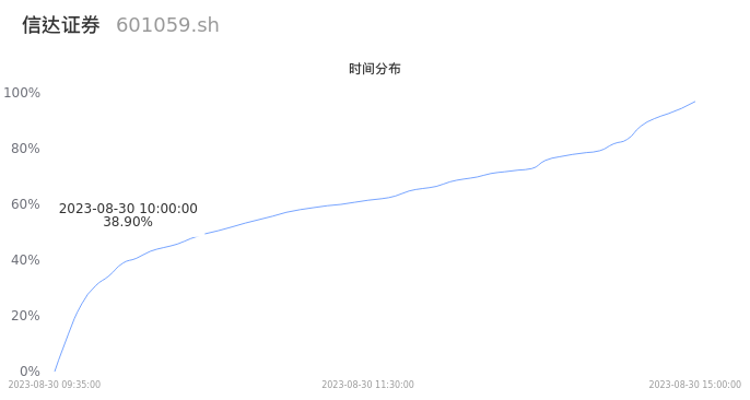 601059信达证券2023年08月30日成交95.42万手,成交金额19.69亿元,相较昨日缩量22.33万手,换手率29.42%,成交活跃。