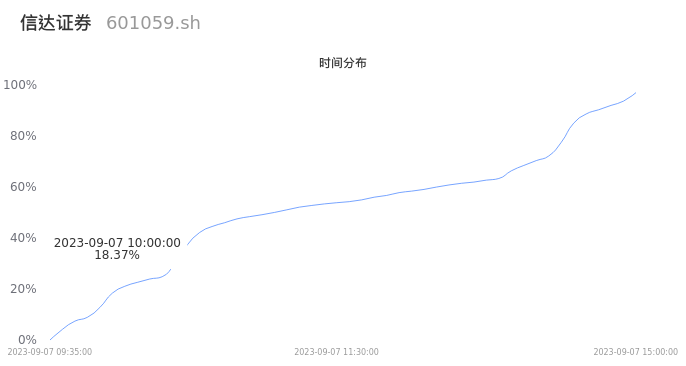 601059信达证券2023年09月07日成交78.09万手,成交金额14.52亿元,相较昨日放量39.47万手,换手率24.08%,成交活跃。