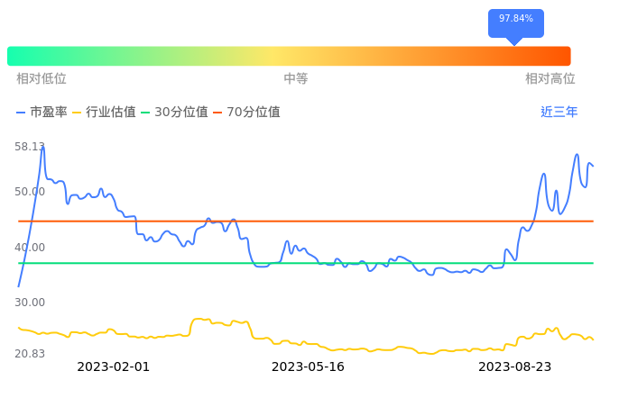 信达证券当前市盈率PETTM为54.56,在所属的证券中,市盈率PETTM排40名。前5名分别为国泰君安PETTM11.02、华泰证券PETTM12.30、国信证券PETTM12.80、广发证券PETTM13.12、招商证券PETTM14.11。从PETTM估值走势数据来看,信达证券当前市盈率PETTM为54.56,超过近3年97.84%的历史数据。