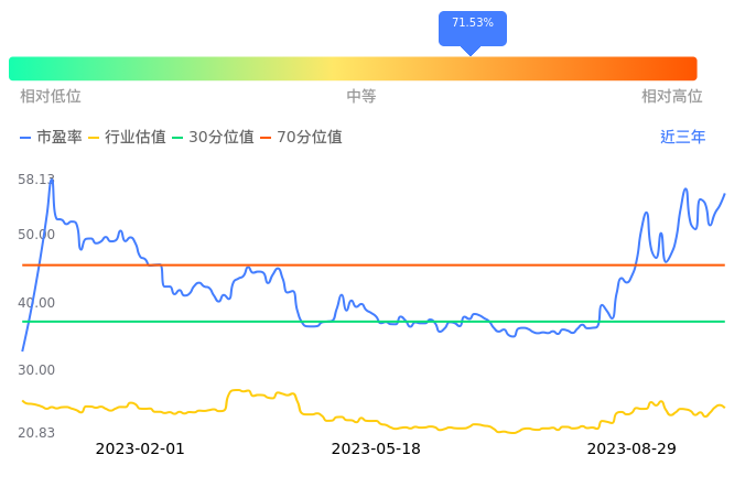 信达证券当前市盈率PETTM为45.62,在所属的证券中,市盈率PETTM排36名。前5名分别为国泰君安PETTM12.04、华泰证券PETTM12.11、广发证券PETTM13.29、国信证券PETTM14.01、中国银河PETTM14.55。从PETTM估值走势数据来看,信达证券当前市盈率PETTM为45.62,超过近3年71.53%的历史数据。