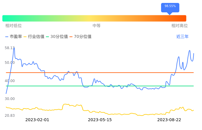 信达证券当前市盈率PETTM为55.22,在所属的证券中,市盈率PETTM排39名。前5名分别为国泰君安PETTM11.13、华泰证券PETTM12.54、国信证券PETTM13.02、广发证券PETTM13.37、招商证券PETTM14.33。从PETTM估值走势数据来看,信达证券当前市盈率PETTM为55.22,超过近3年98.55%的历史数据。