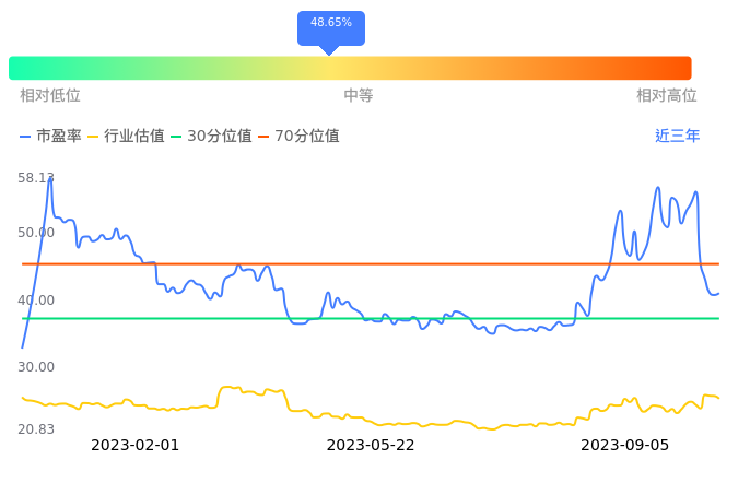 信达证券当前市盈率PETTM为40.53,在所属的证券中,市盈率PETTM排34名。前5名分别为国泰君安PETTM12.01、华泰证券PETTM12.04、国信证券PETTM13.71、广发证券PETTM13.94、中国银河PETTM14.22。从PETTM估值走势数据来看,信达证券当前市盈率PETTM为40.53,超过近3年48.65%的历史数据。