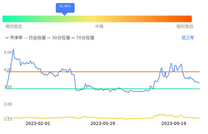 信达证券当前市净率PB为3.25,在所属的证券中,市净率PB排46,前五名分别为海通证券市净率0.78、国元证券市净率0.89、国泰君安市净率0.92、华创云信市净率0.92、华西证券市净率0.96。信达证券当前市净率PB为3.25,超过近3年42.40%的历史数据。