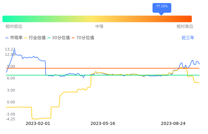 信达证券当前市现率为9.55,在所属的证券中,市现率排11,前5名分别为、招商证券市现率1.90、申万宏源市现率1.98、兴业证券市现率3.01、广发证券市现率3.65、中泰证券市现率4.70。信达证券当前市现率为9.55,超过近3年77.15%的历史数据。