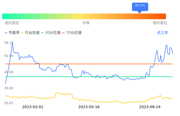 信达证券当前市盈率PETTM为53.19,在所属的证券中,市盈率PETTM排39名。前5名分别为国泰君安PETTM11.07、华泰证券PETTM12.66、国信证券PETTM12.96、广发证券PETTM13.24、招商证券PETTM14.22。从PETTM估值走势数据来看,信达证券当前市盈率PETTM为53.19,超过近3年90.71%的历史数据。