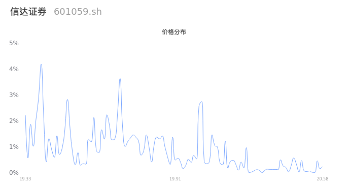 然后我们来看下当日成交的价格分布。将今天股票的最低价与最高价之差形成的价格区间进行切片,并画直方图进行分析,观察成交量在价格区间的分布情况。可以发现,当日的成交分布呈现左偏峰分布,这说明,该股票大部分成交集中在中位数以下,说明交易重心下降,近期可能会存在短线下跌风险。