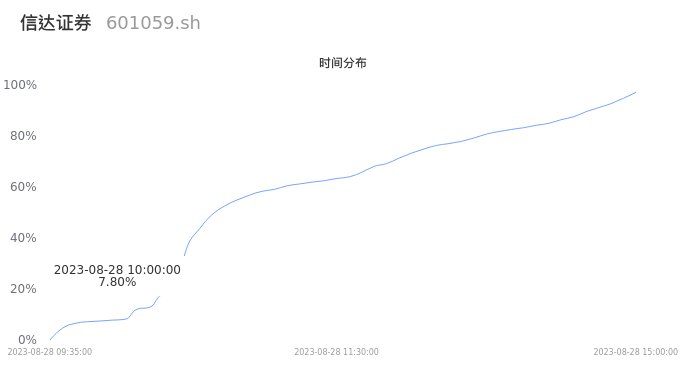 601059信达证券2023年08月28日成交145.89万手,成交金额32.74亿元,相较昨日放量51.08万手,换手率44.98%,成交活跃。