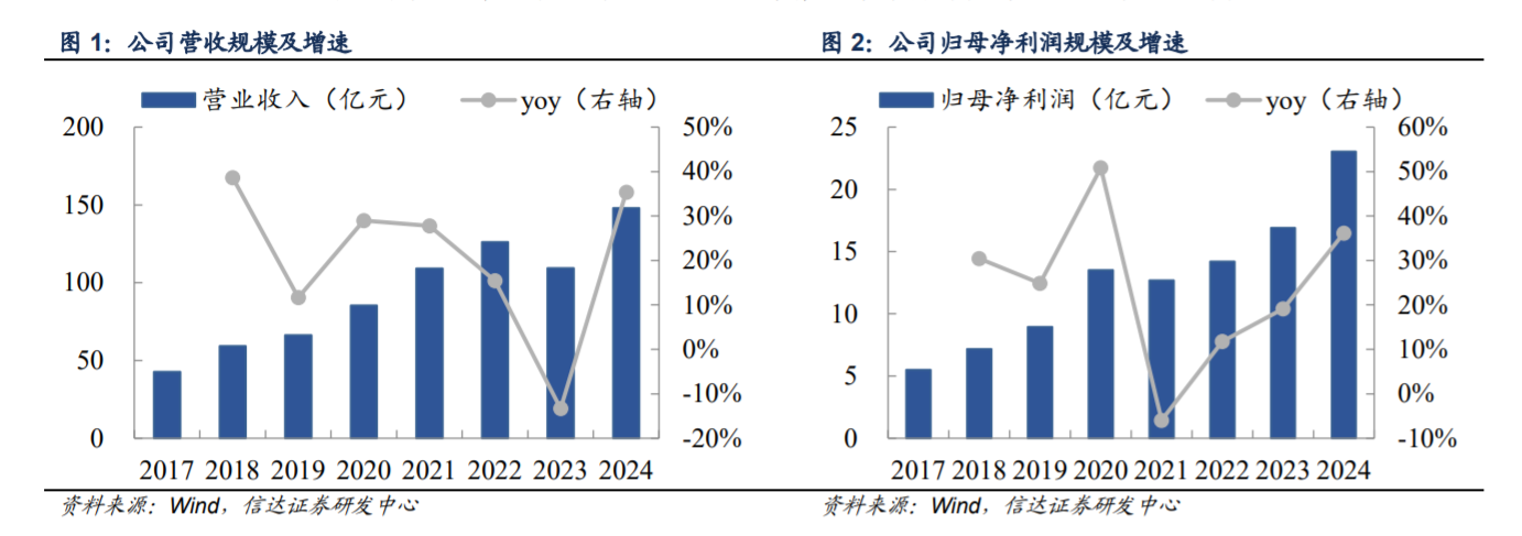 2017-2024年公司收入CAGR为19.4%,净利润CAGR为22.7%;2024年收入、归母净利润分别实现35.4%、36.2%的增长,拥有较高增长势能。