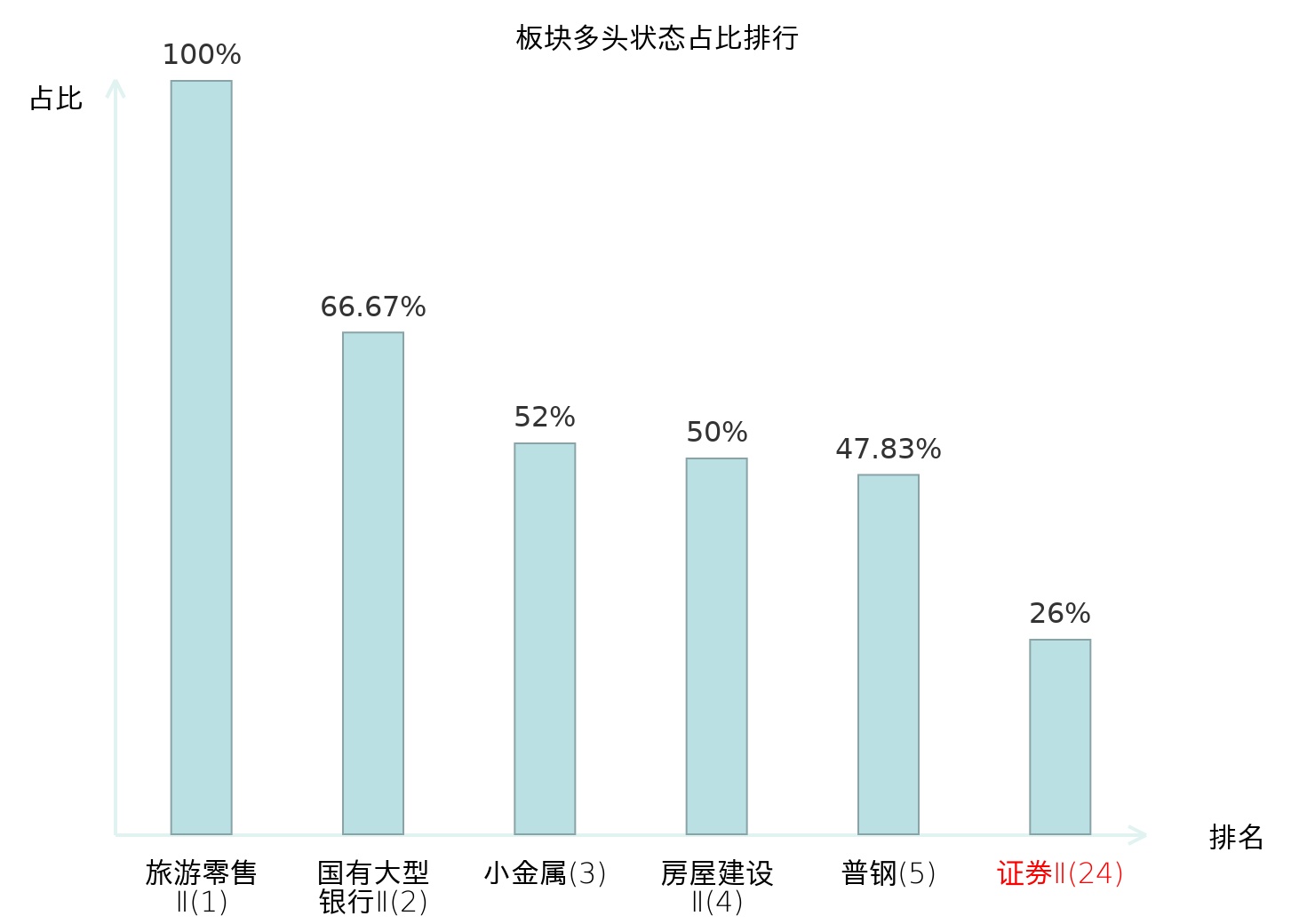 全市场所有行业板块中主力多头状态占比排名中,旅游零售Ⅱ板块位居第一。其他电源设备Ⅱ板块名次提升最快,较昨日上升55位。