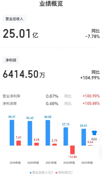 图为恒泰证券2023年业绩及往年概览,曾在2022年出现明显亏损