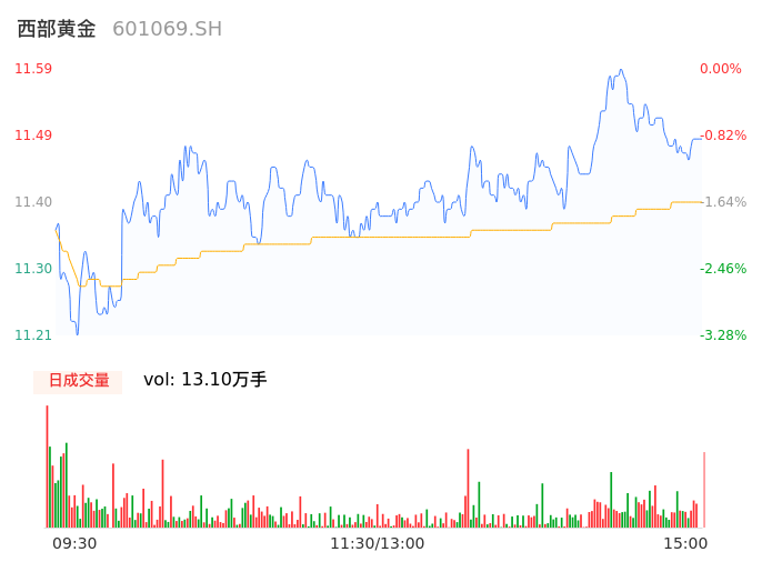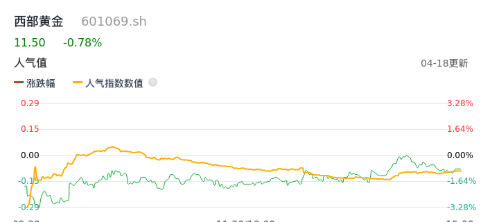 04月18日,西部黄金收报11.50,股价涨幅-0.78%,成交金额1.50亿元,换手率1.92%。