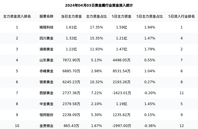 从主力资金流向来看,贵金属行业今日主力资金流入46.13亿元,在所有申万二级行业中排名:11/131。