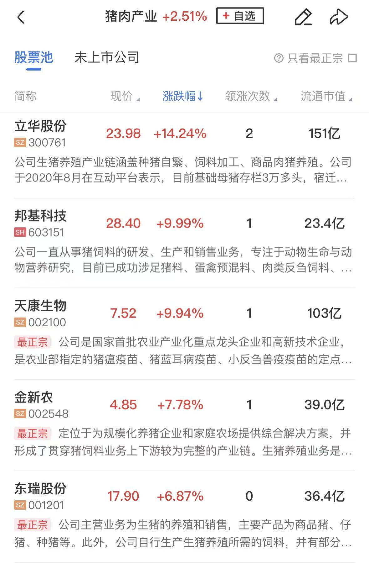 猪肉板块同样表现亮眼,邦基科技、天康生物涨停,立华股份、金新农、牧原股份等个股涨幅居前。
