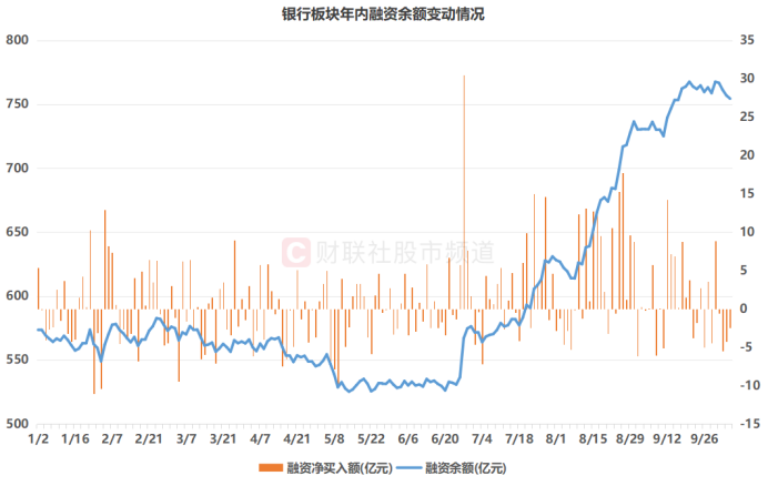 注:银行板块年内融资余额变动情况(截至10月15日数据)