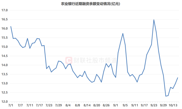 注:农业银行近期融资余额变动情况(截至10月16日收盘)