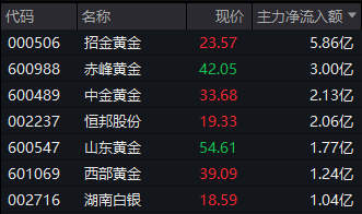 Wind实时监测数据显示,截至午间收盘,贵金属行业获得逾18亿元主力资金净流入。其中招金黄金获得逾5亿元净流入,赤峰黄金获得逾3亿元净流入,中金黄金、恒邦股份均获得逾2亿元净流入。