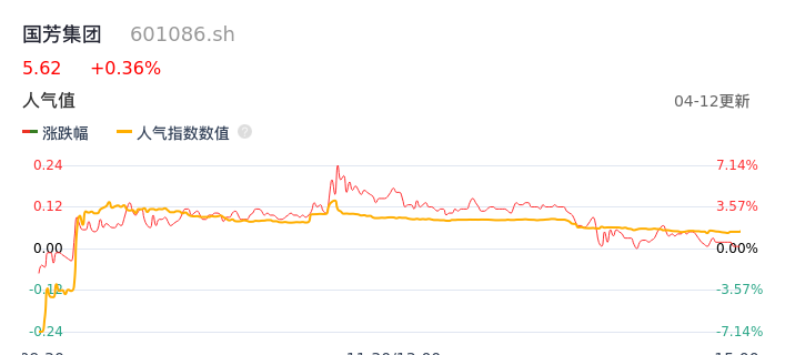 04月12日,国芳集团收报5.62,股价涨幅0.36%,成交金额2.89亿元,换手率7.58%。