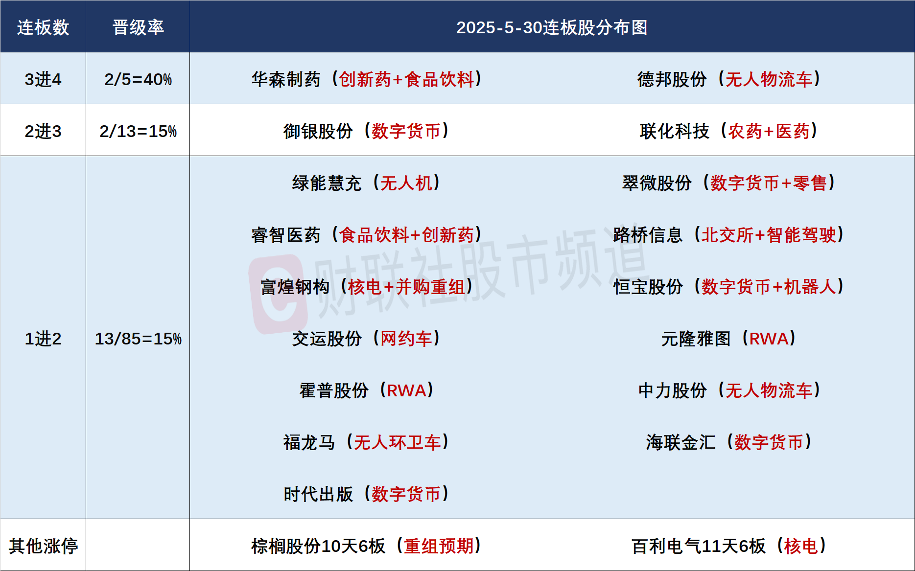 板块方面,国家药监局5月29日批准11款创新药上市,受消息刺激,创新药概念全天领涨,华森制药4连板,睿智医药20CM2连板,不过值得注意的是热景生物、三生国健等人气股大幅冲高回落,板块已显露出分歧态势;猪肉板块异军突起,巨星农牧、湘佳股份涨停,权重牧原股份涨近5%,消息面上,多家头部猪企接相关通知,暂停能繁母猪扩产、调控二次育肥。