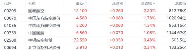 航空股上涨,国泰航空涨超2%,中国东方航空、中国南方航空、中国国航涨超1%。国泰海通发布研报称,维持航空油运增持。航空业超级周期或将开启,客座率创新高而票价处低位,票价市场化且供给低增,需求增长与客源结构恢复将驱动盈利上行;预计10月行业性盈利,近期换季影响弱于往年,公商出行活跃支撑量价继续同比上升。油运Q4盈利将创十年新高,有望迎来超级牛市。快递行业反内卷成效明显,Q3头部盈利继续分化。