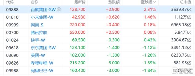 大型科技股涨跌不一,百度涨超2%,小米、腾讯收涨,阿里巴巴、哔哩哔哩、美团等跌超1%。中金公司认为,AI科技投资方兴未艾。一方面,中美科技投资继续增长,2026年“美股七姐妹”仍在2025年资本开支同比增长65%的基础上维持了10~20%的双位数增长,中国科技“十巨头”的2025年资本开支预期增速也在年初转正后持续升至9月的26%。另一方面,四中全会对科技创新的追求上升到更高层次,强调“科技自立自强水平大幅提高”,科技水平要“抢占制高点”。