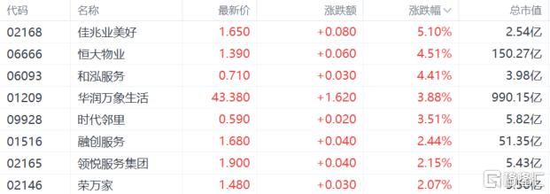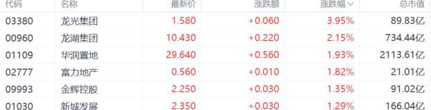 物管股、内房股走强,佳兆业美好涨超5%,恒大物业涨超4%,华润万象生活、龙光集团涨超3%。中信证券认为,2026年房地产企业可能进入资产负债表修复的关键一年,部分企业可能见到盈利长周期底部。率先脱困的企业,往往布局好的城市,更具备正在良好运营的投资性房地产,或拥有一些有增值潜力的金融资产。