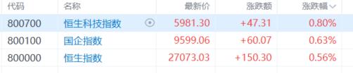 11月13日,港股三大指数集体上涨,恒生科技指数最高涨至1.5%,最终收涨0.8%,恒生指数国企指数分别上涨0.56%及0.63%,恒指更是站上27000点上方。
