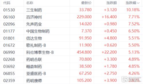 创新药概念活跃三生制药涨超10%,百济神州先声药业涨超7%,中国生物制药信达生物、歌礼制药等跟涨。