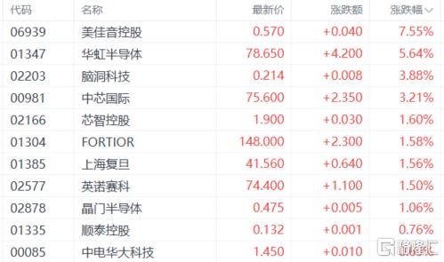 半导体、芯片股涨幅居前华虹半导体涨超5%,中芯国际中兴通讯上海复旦、地平线机器人等跟涨。