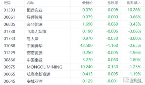 煤炭股下挫,易大宗中国神华南南资源中国秦发等跟跌。