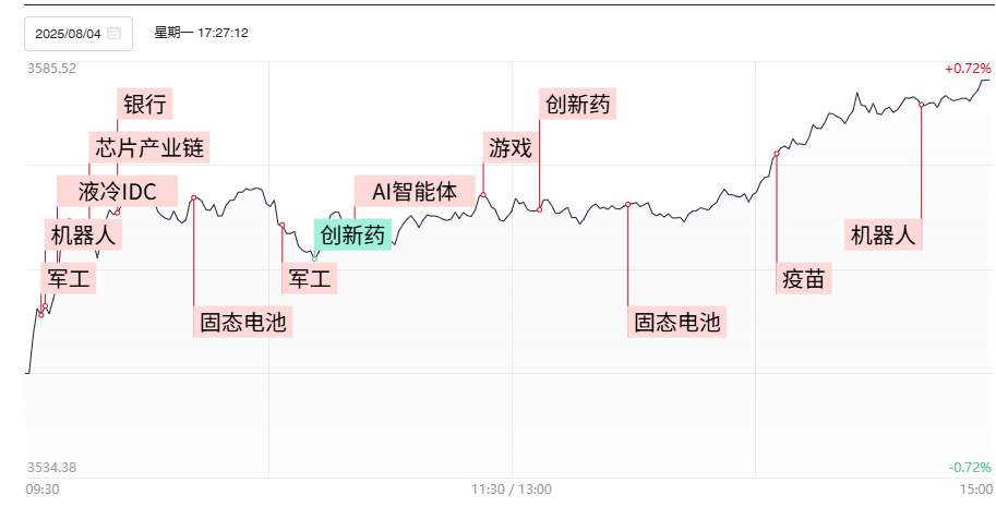 工信部等八部门日前印发《机械工业数字化转型实施方案》,明确到2027年,智能制造能力成熟度二级及以上企业占比将达50%。尽管美股新上市的应用软件公司Figma上周五走出冲高回落行情,但AI智能体、新型工业化等方向全天仍表现不俗,鼎捷数智日线9连阳续创阶段新高,金现代、普元信息等AI编程方向尾盘也迎来爆发。但新型工业化方向领涨的同时,万兴科技等前期人气品种表现则相对平淡。在应用端分化的同时,机器人概念股午后批量爆发,浙江荣泰、五洲新春等多股强势涨停。除去2025世界机器人大会举办在即外,智元机器人宣布,将于2025年8月21日在上海举办首届合作伙伴大会,此外宇树机器人的量产对于上游配套加工设备以及材料端的实质性需求或成为整个机器人概念股新的潜在业绩增量。